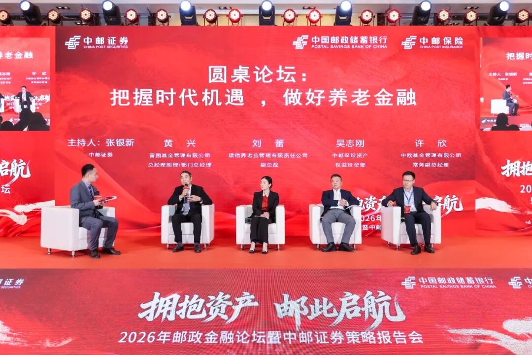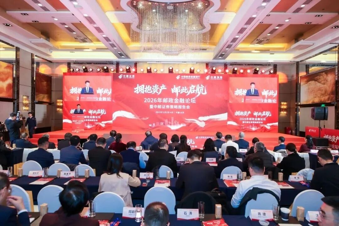 12月3日至4日,“2026邮政金融论坛暨中邮证券策略报告会”在北京成功举办。本次论坛由中邮证券联合中国邮政储蓄银行、中邮保险共同主办,是邮政整合银行、证券、保险等多方资源、协同发力、共谋发展的一次重要实践。论坛聚焦“十五五”开局之年的宏观经济趋势、金融改革深化、科技创新驱动等核心议题,来自邮政集团、金融机构、企业界及学术界的众多嘉宾汇聚一堂,通过主题演讲与专题研讨,共谋金融与实体经济深度融合的高质量发展路径。中国邮政集团副总经理、邮储银行行长刘建军在主会场发表主旨演讲,中国邮政集团总会计师王嘉君作开幕致辞,中邮保险董事长韩广岳、国务院发展研究中心原副主任刘世锦、清华大学金融科技研究院副院长薛正华、中邮证券首席经济学家黄付生等也发表主旨演讲,中邮证券董事长龚启华主持主会场会议。